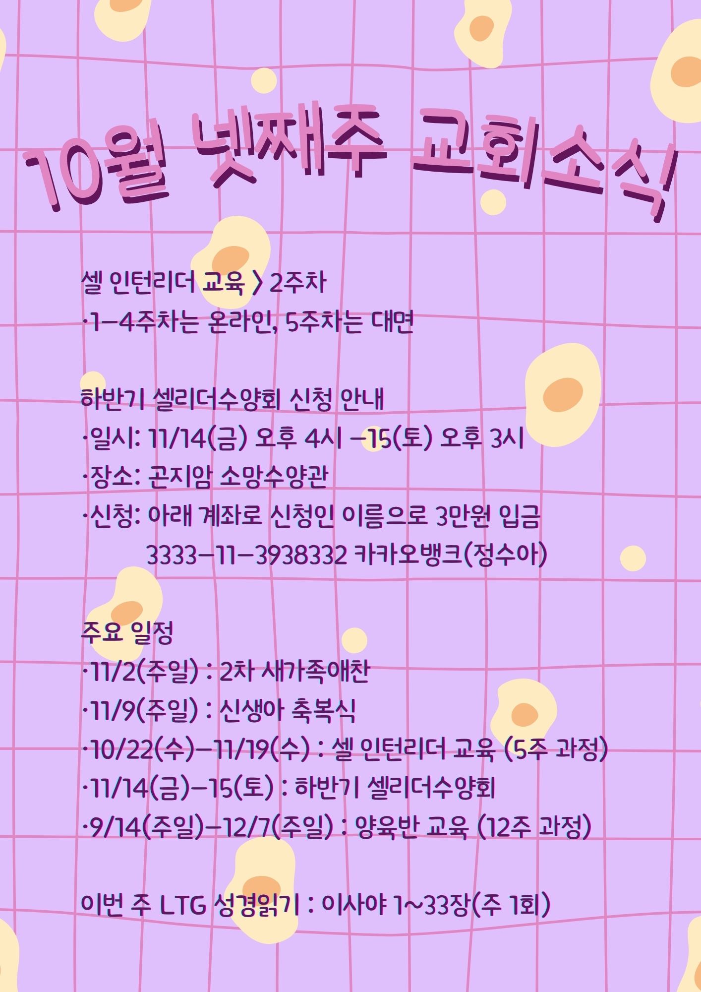 10월 넷째주 교회소식