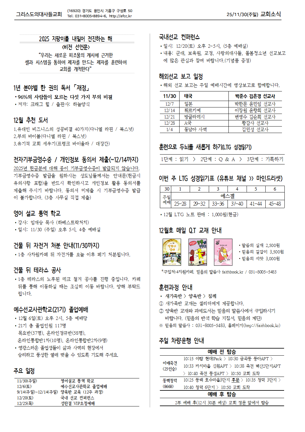 12월 첫째주 교회소식