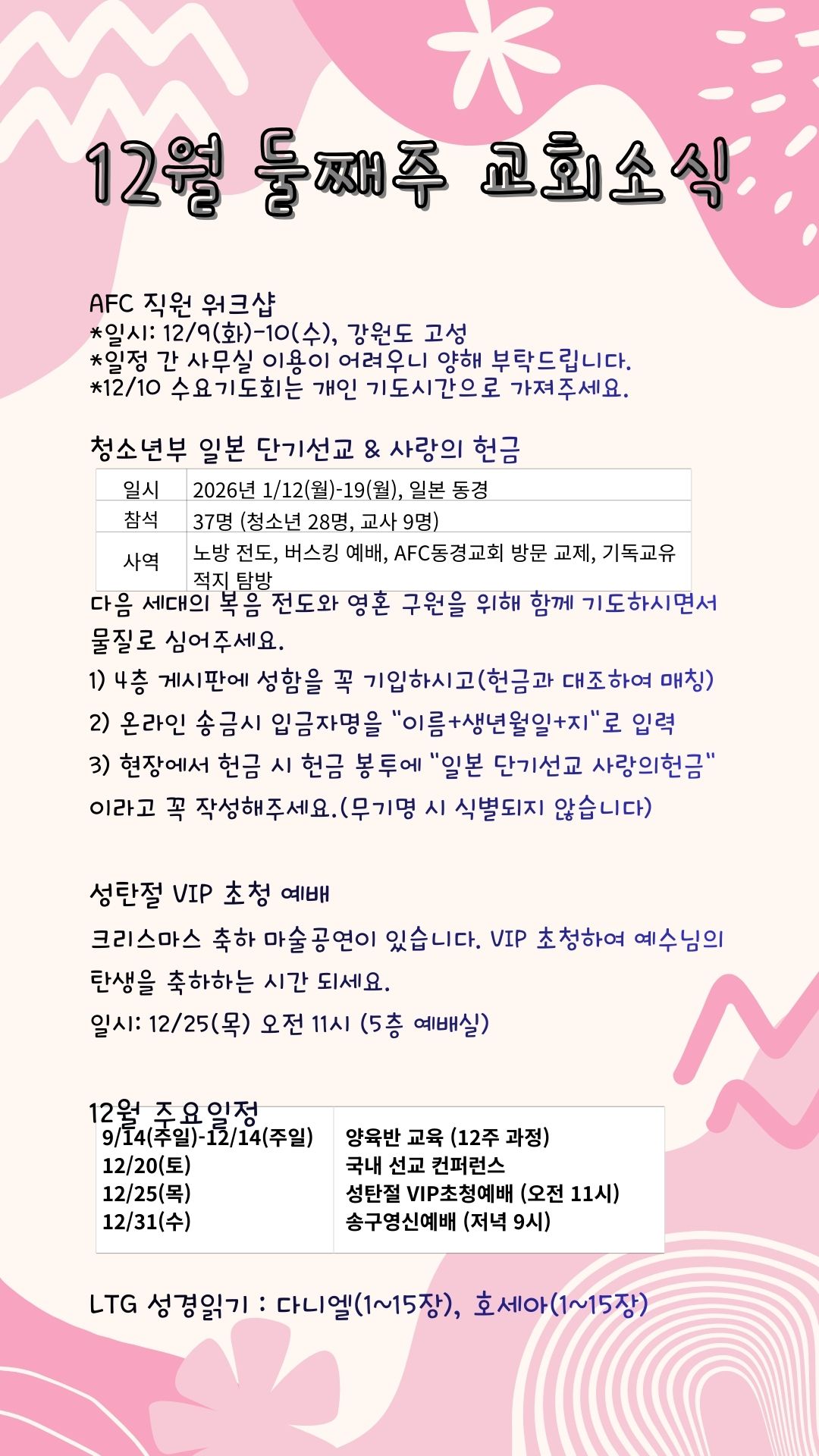 11월 23일 주일 설교 요약과 교회 소식(2부)