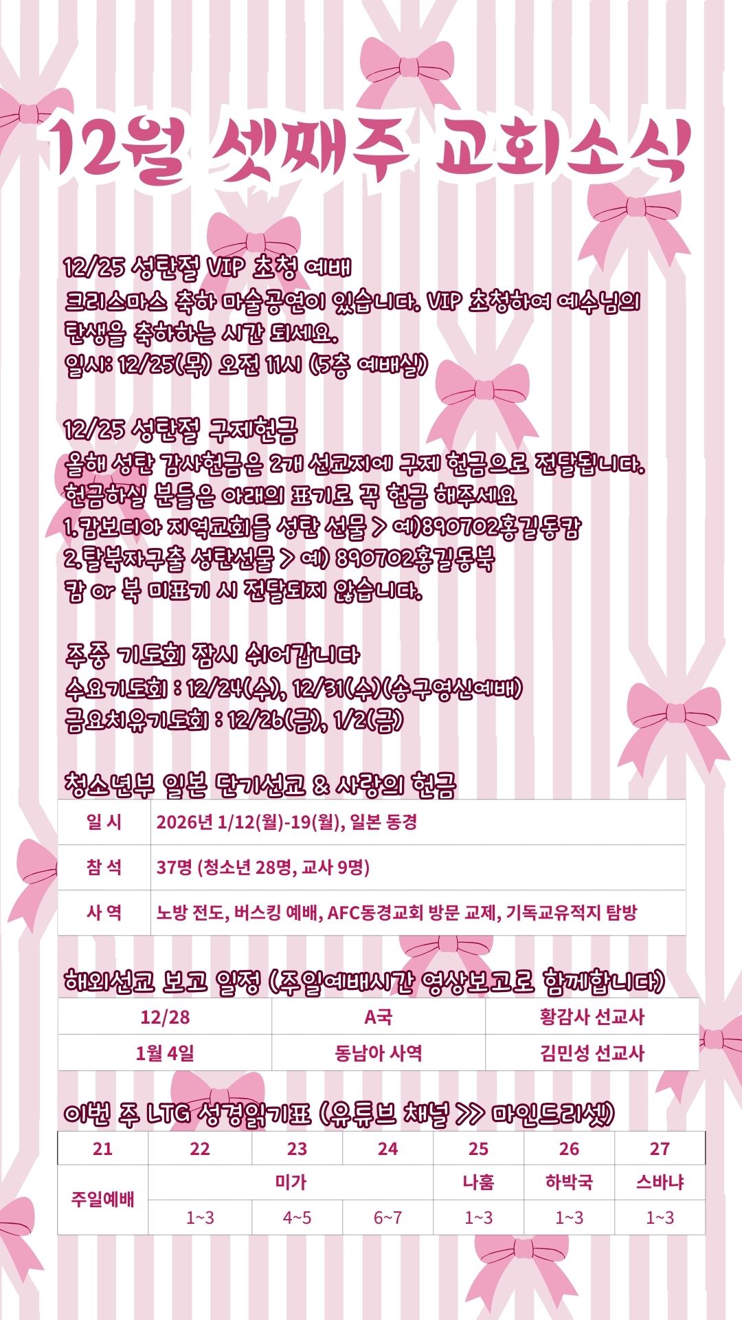 12월 넷째주 교회소식