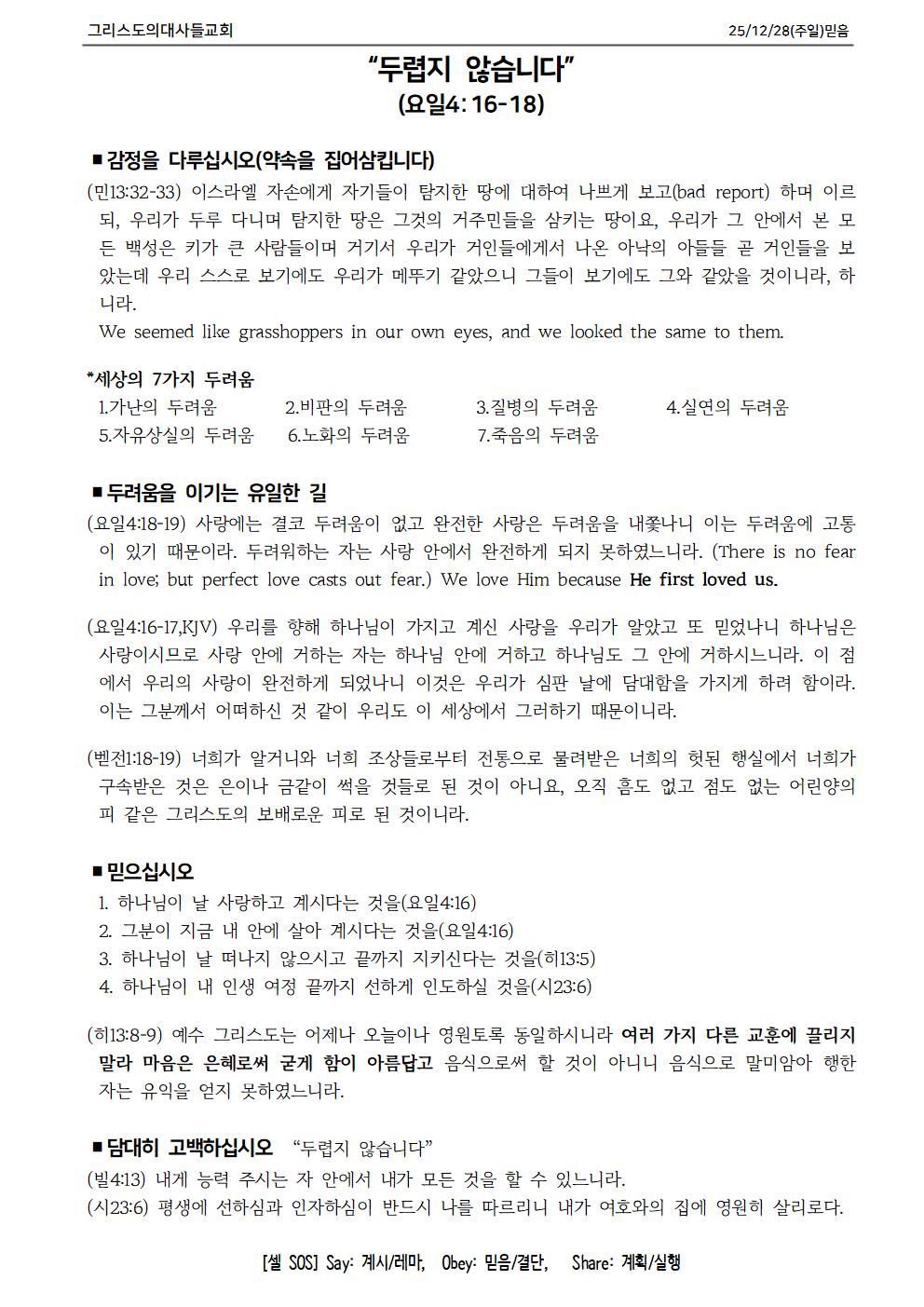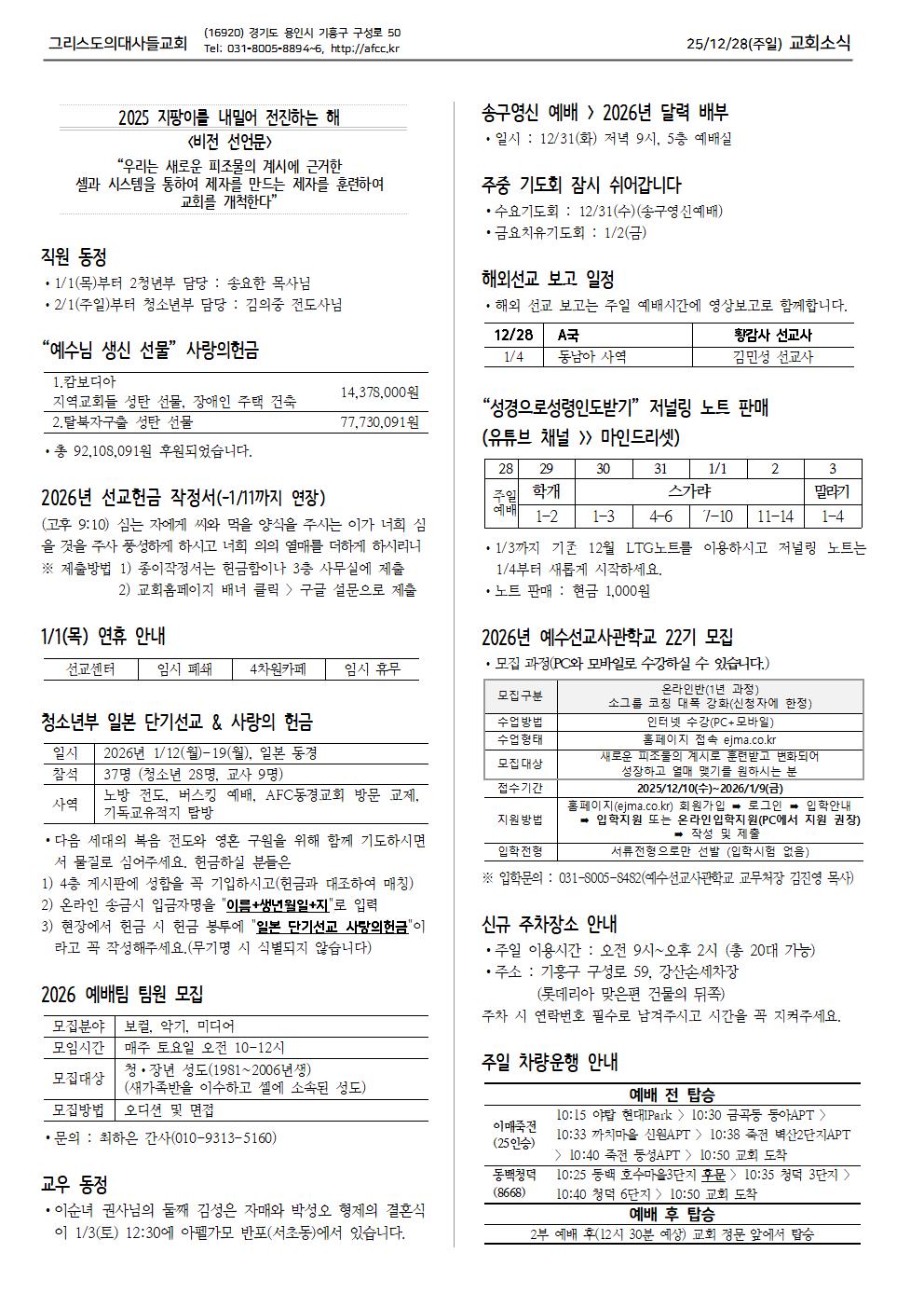 2026년 01월 04일 주일 설교 요약과 교회 소식