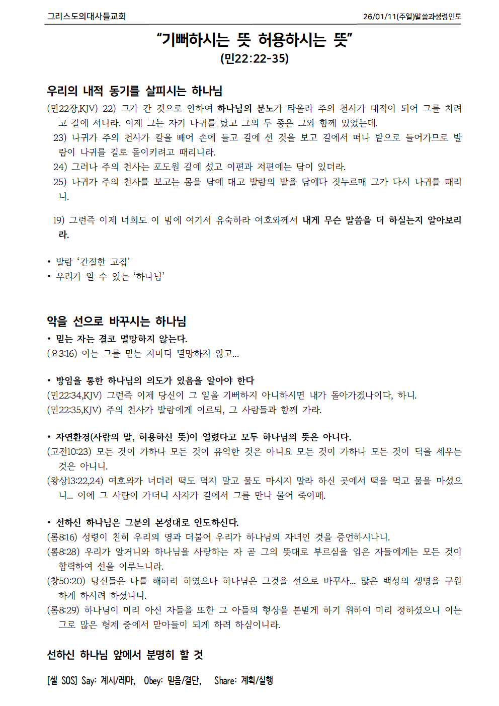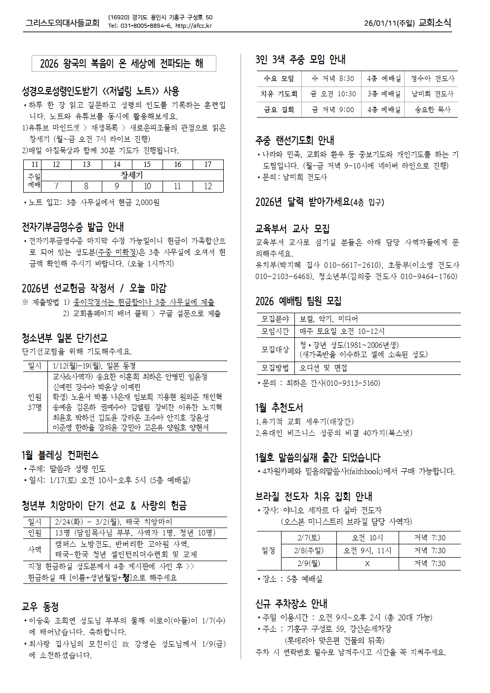 2026년 01월 04일 주일 설교 요약과 교회 소식
