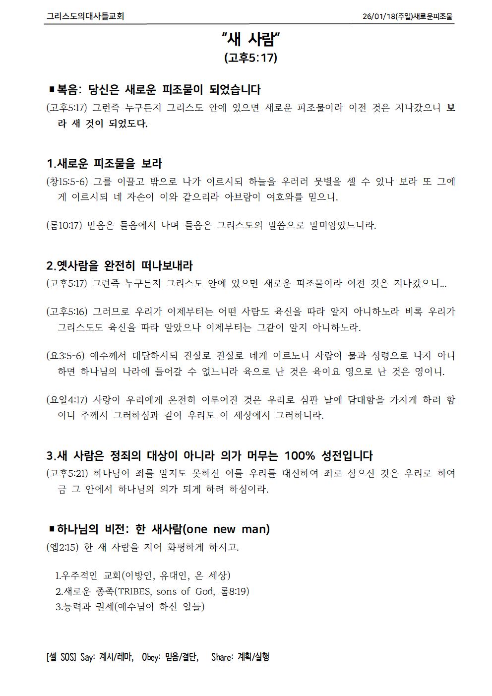 2026년 01월 04일 주일 설교 요약과 교회 소식