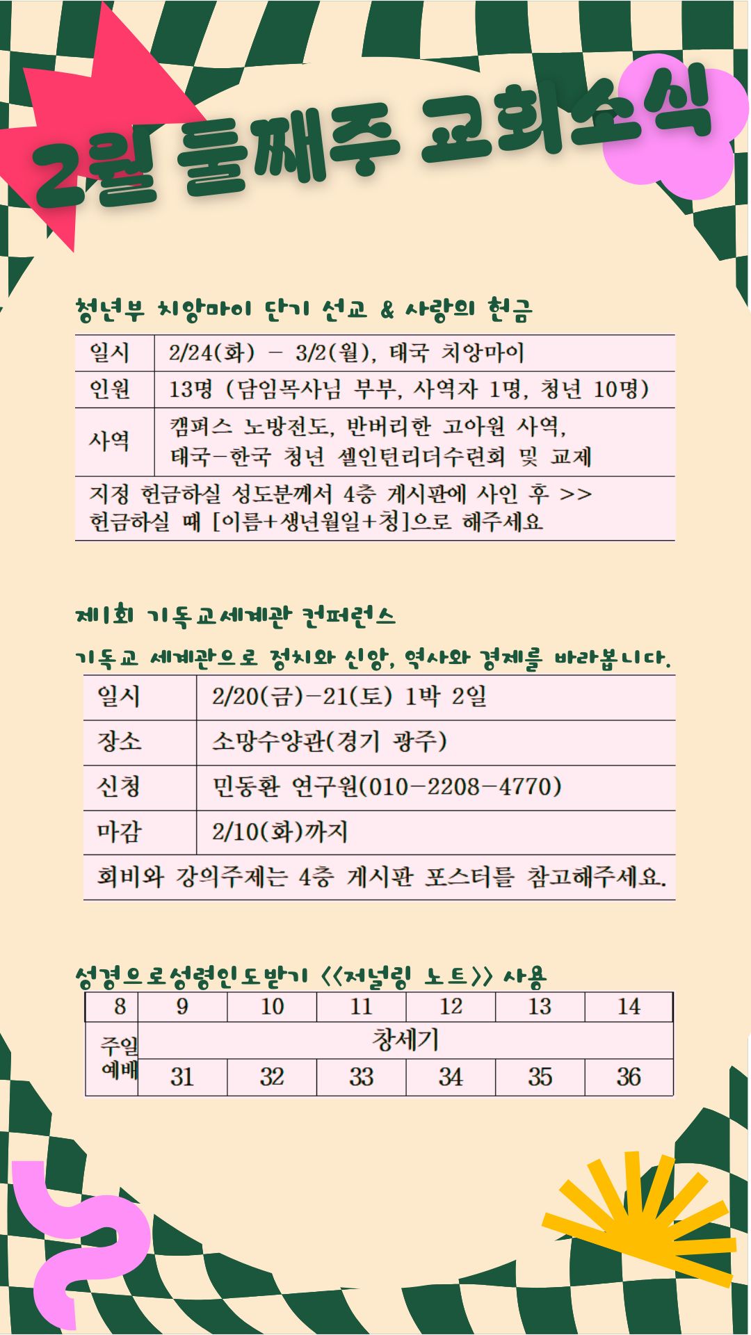 2026년 01월 04일 주일 설교 요약과 교회 소식