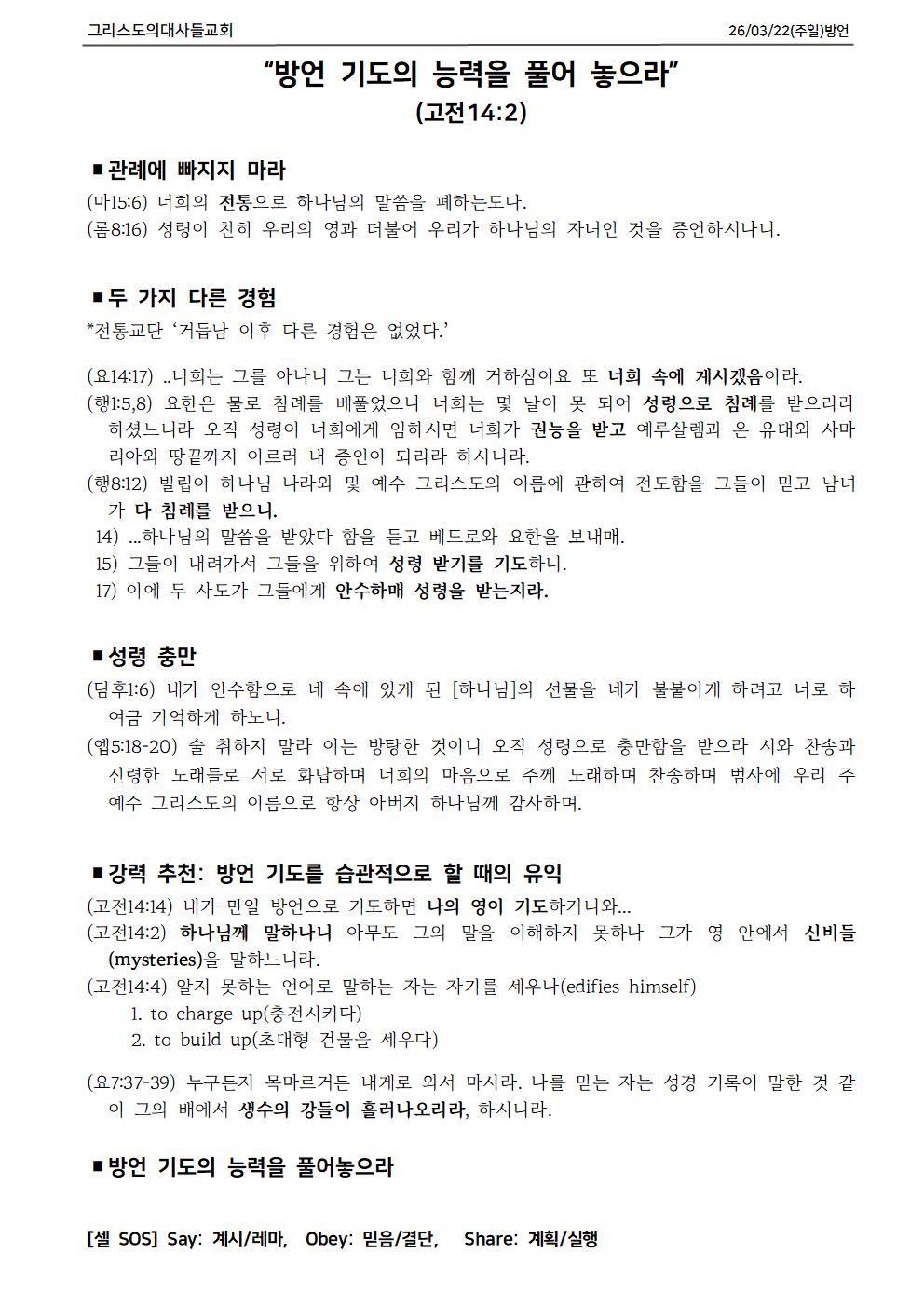 03월 01일 주일 설교 요약과 교회 소식