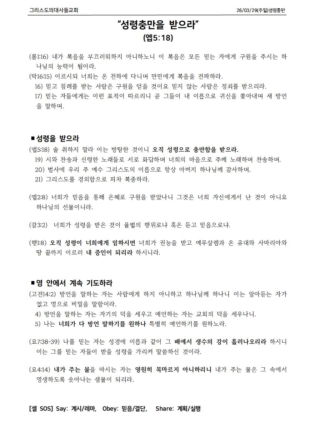 03월 01일 주일 설교 요약과 교회 소식