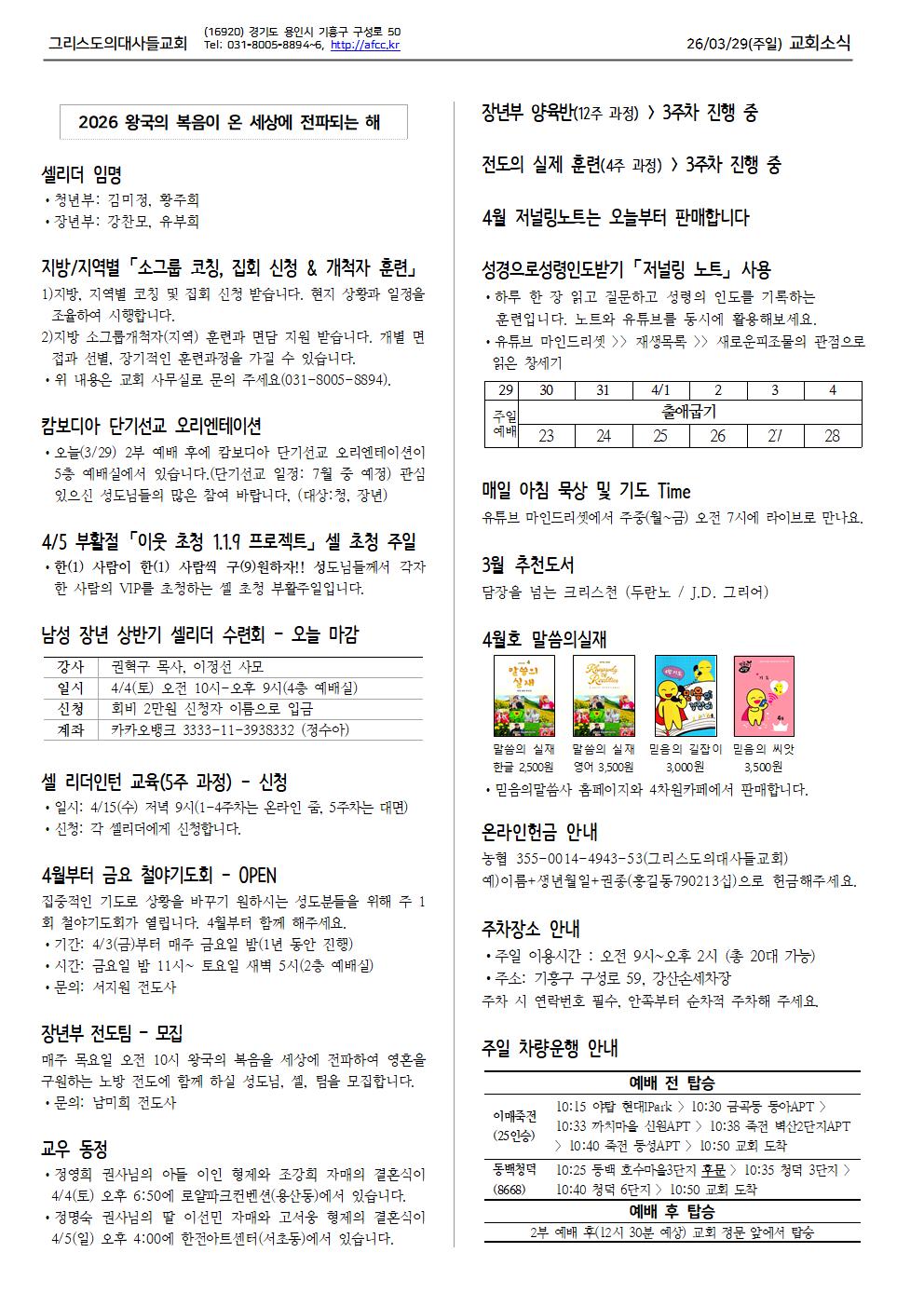 3월 넷째주 교회소식