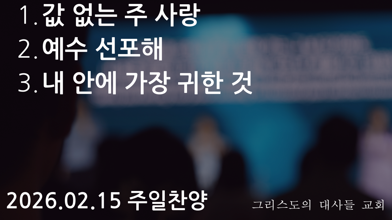 1. 값 없는 주 사랑 2. 예수 선포해 3. 내 안에 가장 귀한 것
